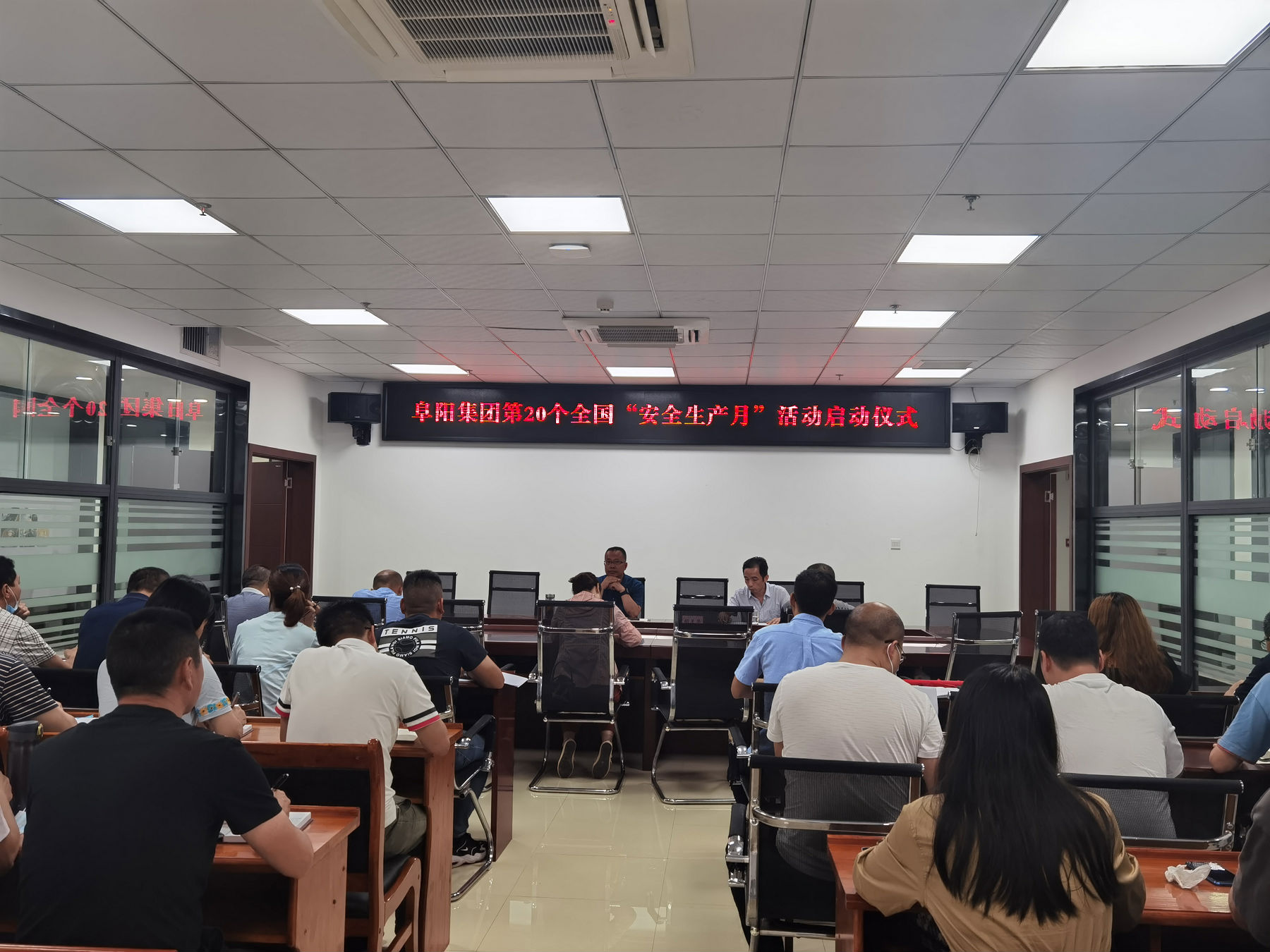 胡天華副總宣讀阜陽集團關(guān)于開展2021年“安全生產(chǎn)月”活動方案,并進行安全宣誓。最后參會人員在安全條幅上簽名。