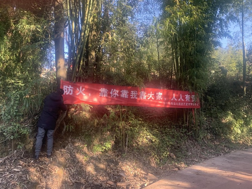 2021年1月19日,為進一步加強森林防火的宣傳,提高各施工單位防火意識,符陽文旅公司利用好張貼橫幅、班組例會等方式勒緊“防火”這根弦??偨浝韰瞧揭螅魇┕挝患訌娚址阑鹦麄鹘逃?,克服麻痹思想、僥幸心理,毫不松懈的做好森林防火工作。
