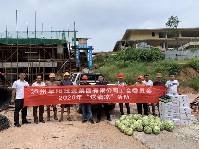 近日,合江持續(xù)高溫,為保障一線人員的身體健康,確保各項生產(chǎn)工作安全有序開展,8月11日,集團公司黨委委員、工會主席袁健,帶領(lǐng)集團黨群紀檢工作部、綜合部先后深入鑫晟學(xué)府、殯儀中心、龍掛山景區(qū)等十多個項目建設(shè)現(xiàn)場,看望慰問奮戰(zhàn)在一線的工作者,為他們送去清涼物資和關(guān)心關(guān)愛。