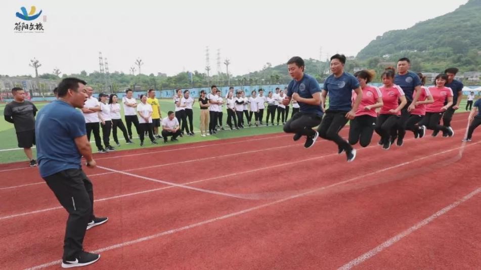 跳長繩項目可謂“怨聲載道”。若是個人賽想必大家都是跳繩屆的一把好手,但團隊跳繩不僅要去適應甩繩速度,更要配合好隊員的跳繩頻率和間距。賽前訓練就明了五分鐘全程跳完是不可能的事情,人的體力、耐力消耗太大。同樣的賽制下我們不去追求速度,更多的是保障過關率。這個時候就體現(xiàn)了符陽文旅人精細的作風啦!一到正式場地,大家都發(fā)現(xiàn)了不對勁,長繩摔打塑膠賽場上會彈跳起來絆住隊員腳步,過關率大打折扣,這極度考驗了甩繩人員的姿勢技巧啦!竇勇局長帶頭不斷調(diào)整甩繩方式,其他同志出謀獻計,平衡了甩繩技巧和隊員跳姿的協(xié)調(diào)性。