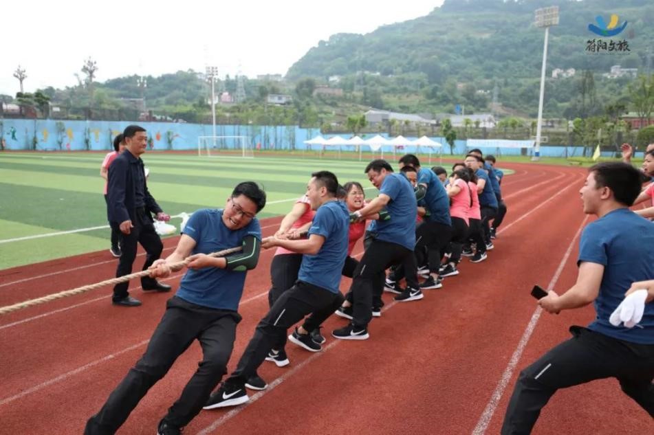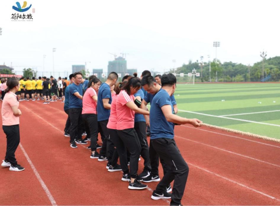 隨著哨聲一響,我們雙手握緊長繩,咬緊牙關向后拉,為了把握節(jié)奏形成合力,心里默念著“一二、一二”,場上一時僵持難下,但難敵強悍對手,第一局廣源達勝。這仿佛符合多數(shù)人的預期,但我們怎會被拘于這固定印象,越戰(zhàn)越勇才是符陽文旅人的風姿。第二場對決比第一場更加艱難,一開場廣源達占據(jù)絕對優(yōu)勢,我們險被拉到了終線,全憑一口氣死撐,牙關咬緊,身體后傾,不斷降低重心,腳步穩(wěn)扎,做著別人眼里無畏的掙扎。一定不能越線!在超高壓下堅持了十余秒,那一刻拼的就是韌勁!一群瘦弱的文旅人憑著一股拼勁慢慢把賽場主動權掌握在了自己手中,每向后移動一步,心里的勁更足了,如荒漠迷路的旅者遇見了綠洲,我們也尋得了力量之源。當現(xiàn)場歡呼聲響起時,我們已癱坐一片,不敢置信,我們贏啦!