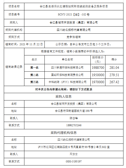 合江縣生活污水處理場站采購在線監(jiān)測設備及服務項目競爭性磋商結果公告