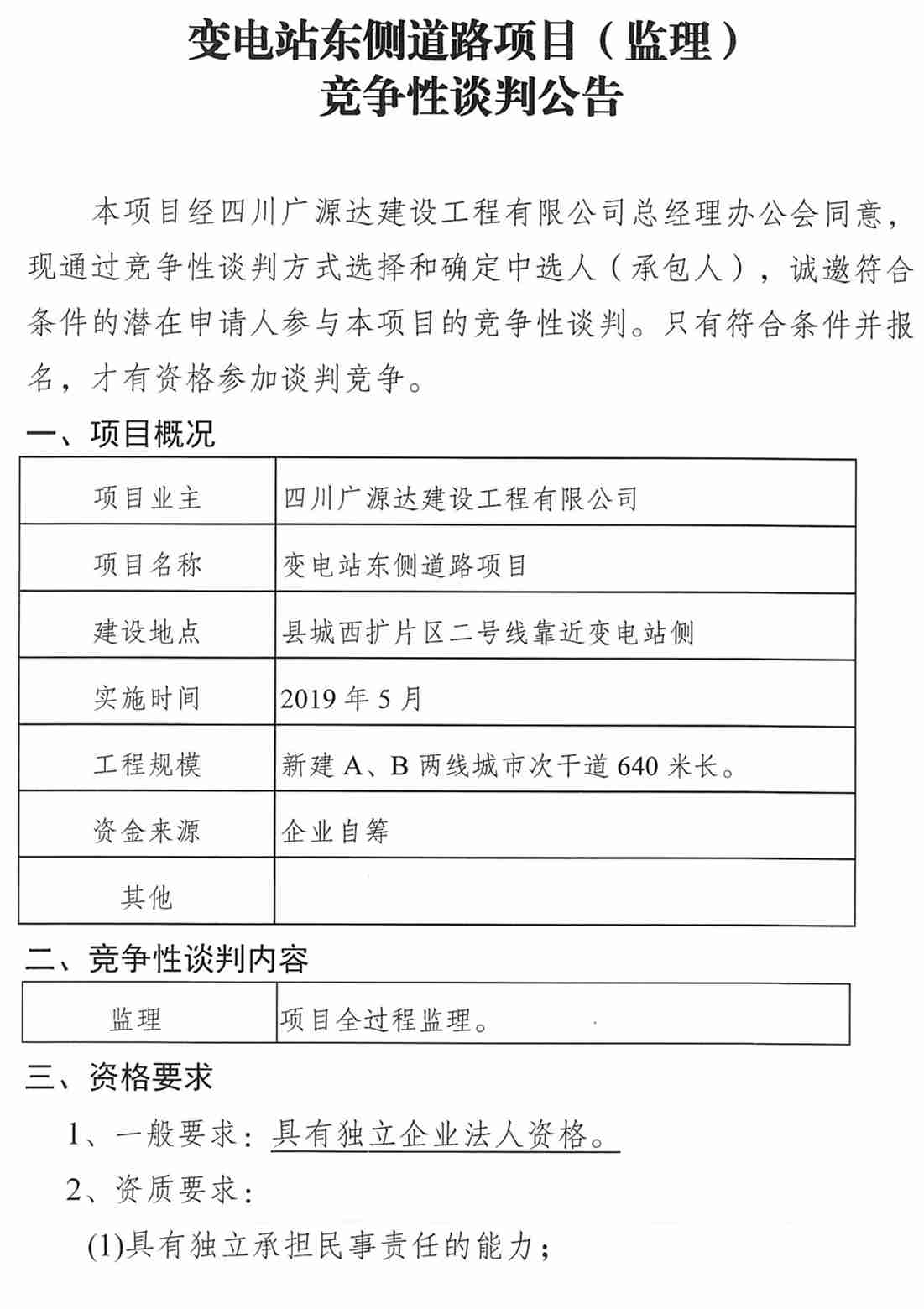 變電站東側(cè)道路項目(監(jiān)理)競爭性談判公告