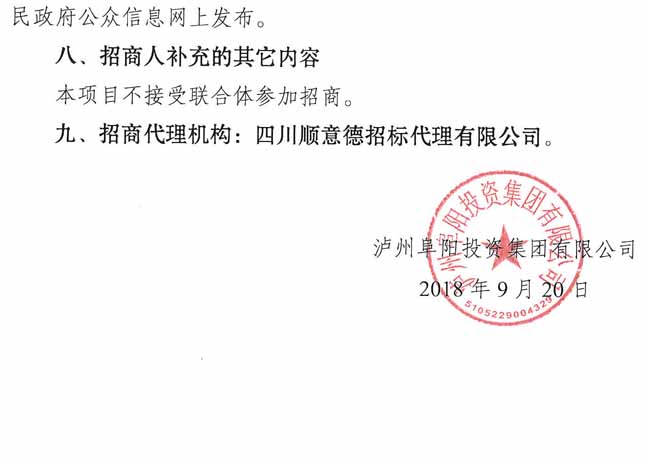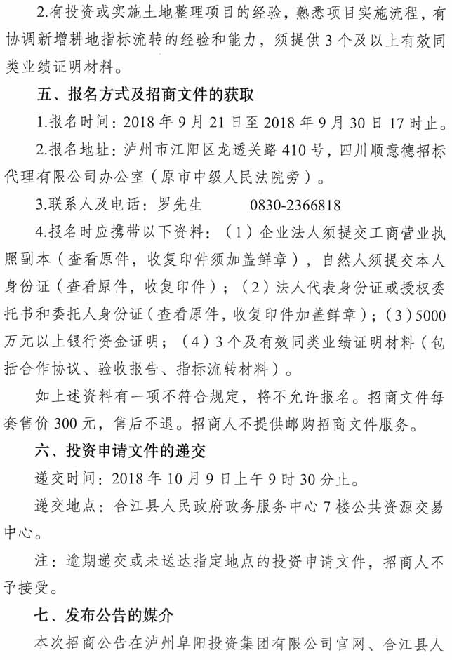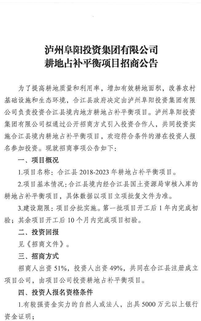招商公告:瀘州阜陽投資集團(tuán)有限公司耕地占補平衡項目招商公告