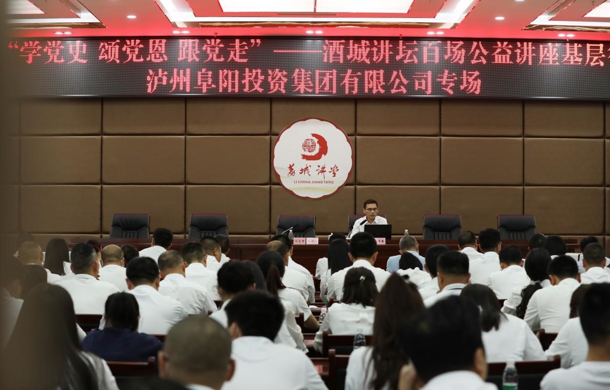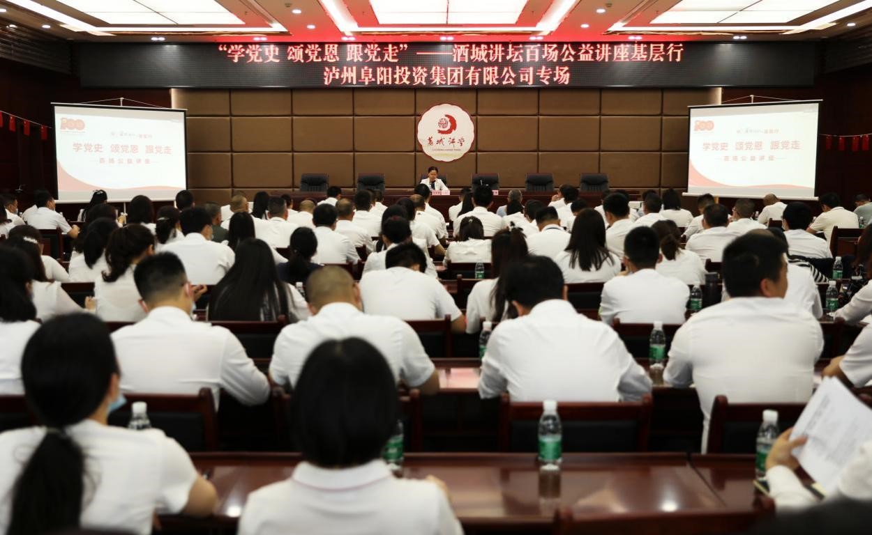 5月19日下午,“學(xué)黨史頌黨恩跟黨走”——酒城講壇百場公益講座基層行瀘州阜陽投資集團(tuán)有限公司專場在政務(wù)中心15樓會議室舉行。活動由黨委書記、董事長游啟君主持,合江縣委宣傳部派出指導(dǎo)人員,集團(tuán)全體領(lǐng)導(dǎo)班子、本部及下屬公司職工200余人參加。