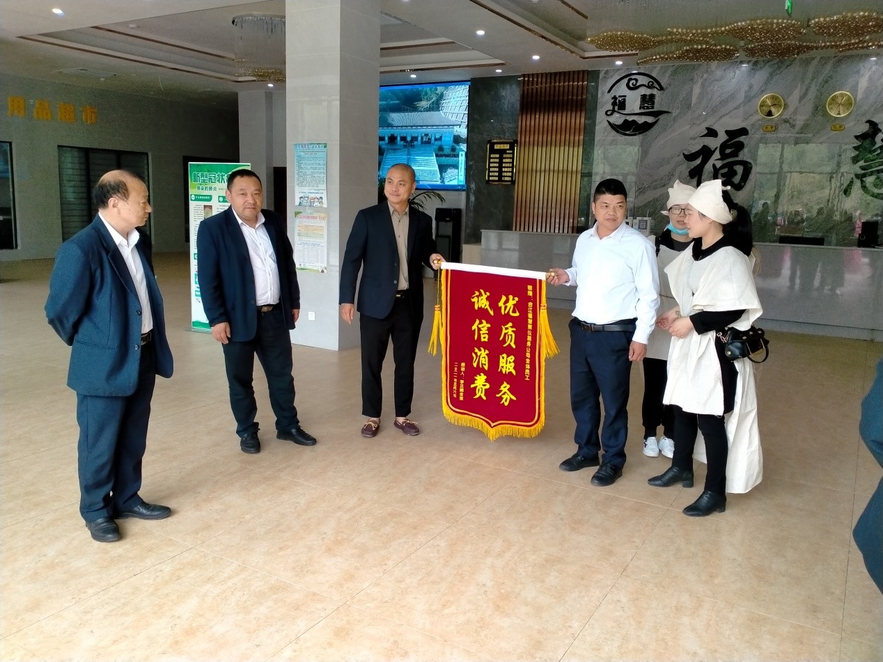 5月6日,家屬李正攜全家走進(jìn)合江縣福慧殯葬服務(wù)有限公司,將一面“誠信消費優(yōu)質(zhì)服務(wù)”的錦旗送到殯儀服務(wù)中心工作人員的手中。