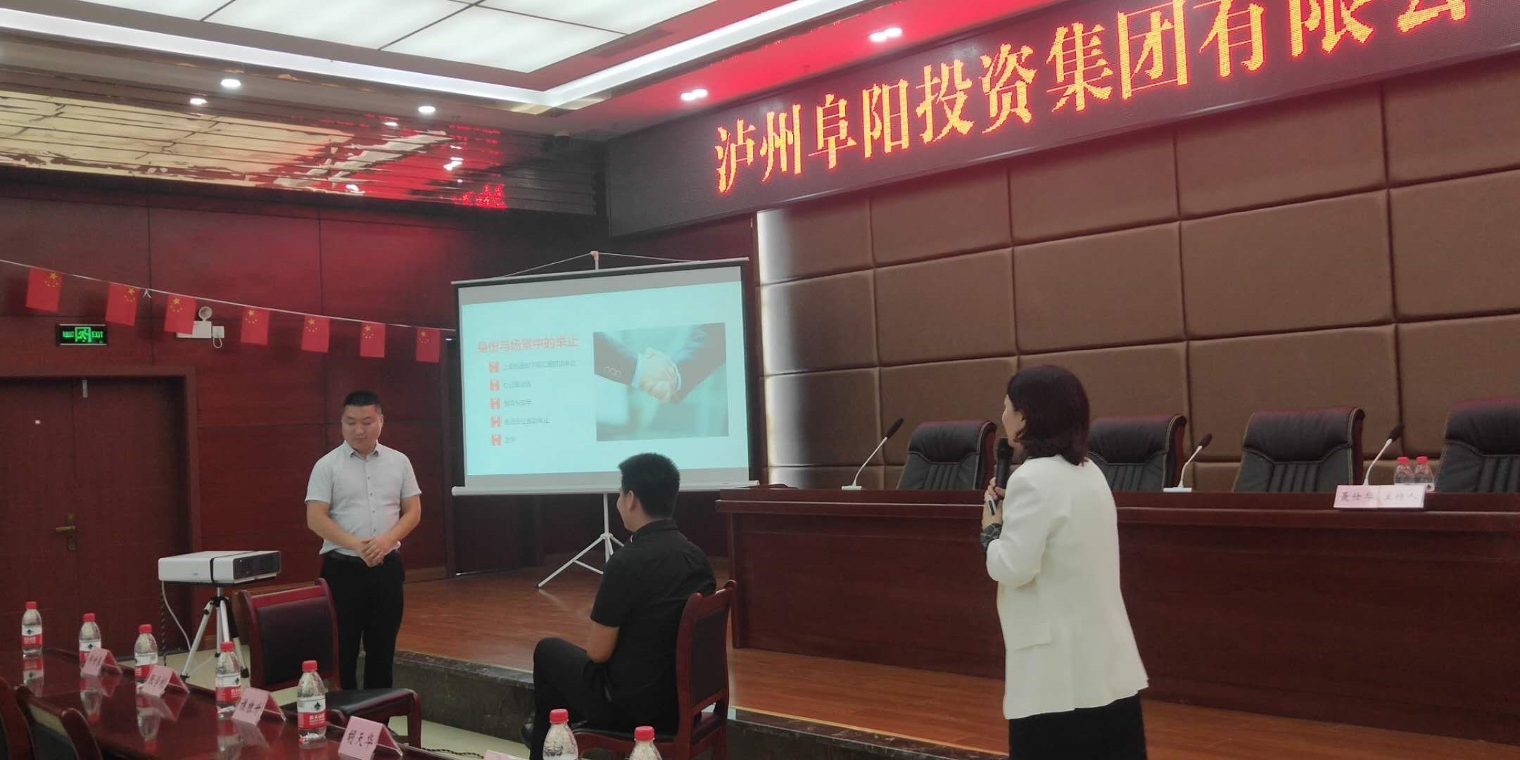 為提高集團員工的職業(yè)素質(zhì),樹立良好的企業(yè)形象。5月26日下午,阜陽集團組織各公司辦公室、后勤、銷售、黨建、人力資源等崗位工作人員70余人開展商務(wù)禮儀培訓(xùn)。培訓(xùn)由瀘州職業(yè)技術(shù)學(xué)院高級講師、高級商務(wù)禮儀培訓(xùn)師劉利亞主講。