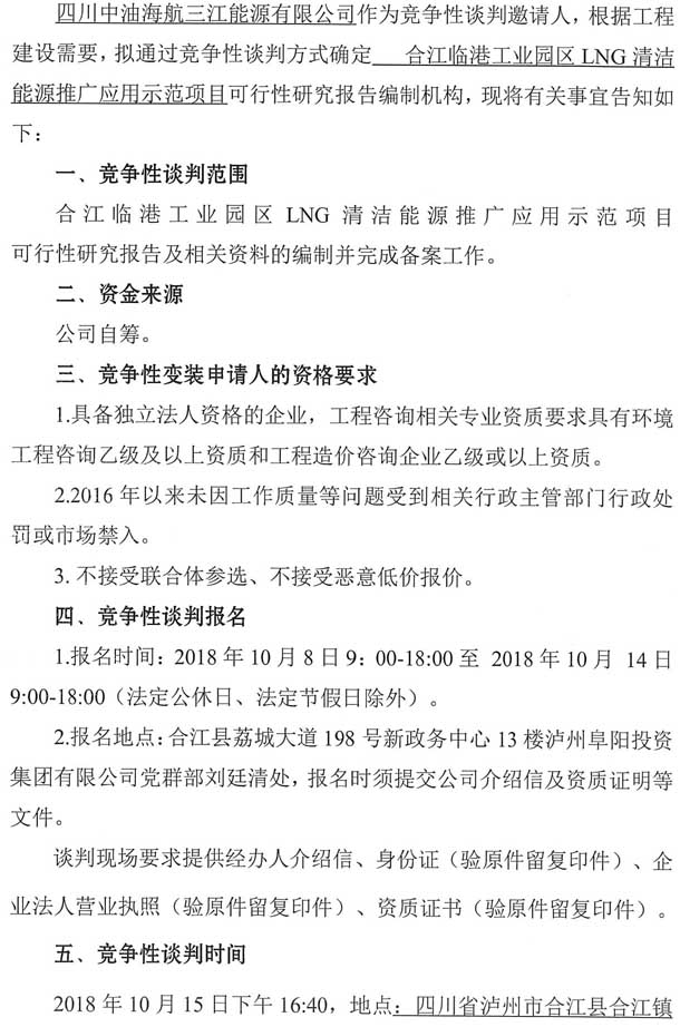 合江臨港工業(yè)園區(qū)LNG清潔能源推廣應(yīng)用示范項(xiàng)目可行性研究報(bào)告編制單位競(jìng)爭(zhēng)性談判公告.doc