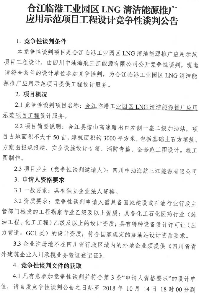 合江臨港工業(yè)園區(qū)LNG清潔能源推廣應用示范項目工程設計競爭性談判公告.docx