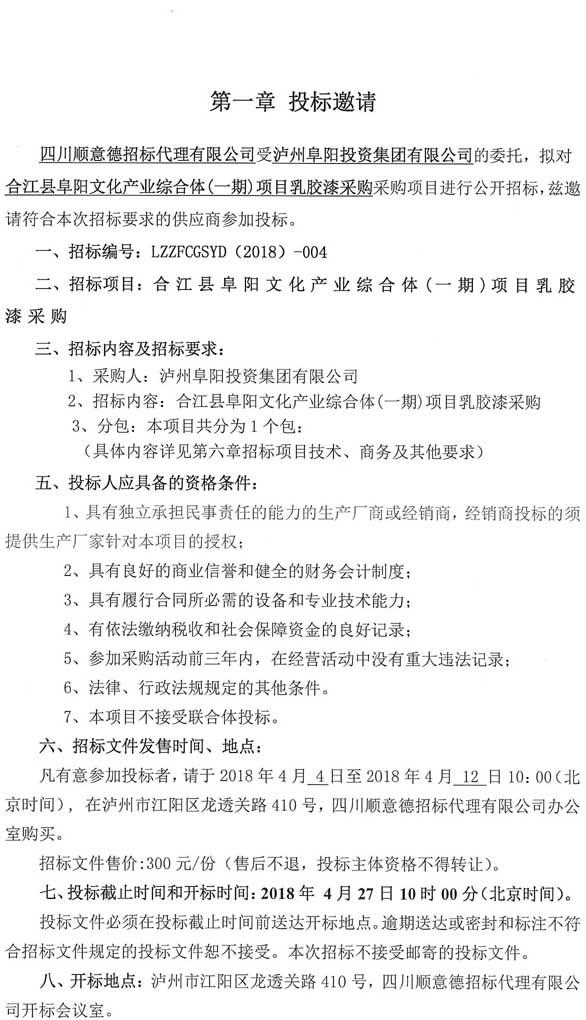 投標(biāo)邀請(qǐng):合江縣阜陽文化產(chǎn)業(yè)綜合體(一期)項(xiàng)目乳膠漆采購