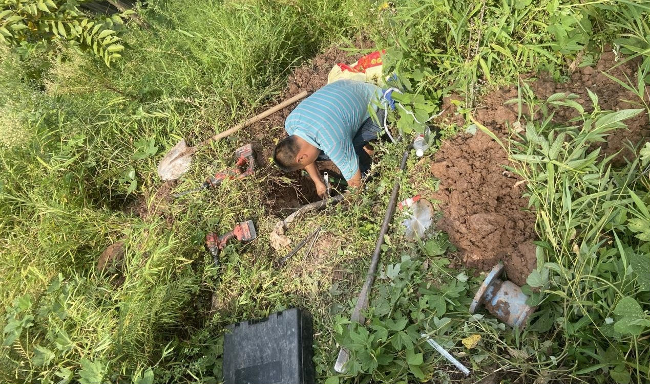 8 月 19 日上午 7 點 40 分鳳鳴片區(qū)負(fù)責(zé)人陳裕寧帶隊查看陽 棚垇私拉亂接現(xiàn)場,預(yù)防后段用水戶無法正常供水