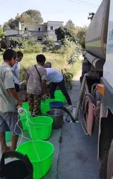 8 月 21 日江北片負(fù)責(zé)人任椿汲組織一線員工對白米鎮(zhèn)向陽村進(jìn)行送水服務(wù)