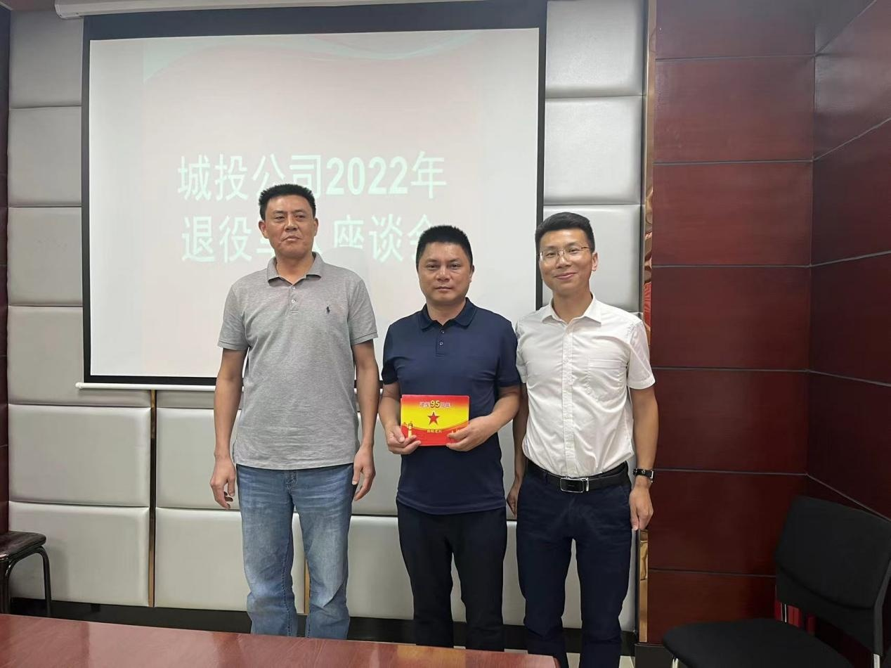 為慶祝中國人民解放軍建軍 95 周年, 2022 年 8 月 1 日 下午, 城投公司董事長兼總經(jīng)理鞠志良、 副總經(jīng)理陳云峰組 織召開退役軍人座談會(huì)。